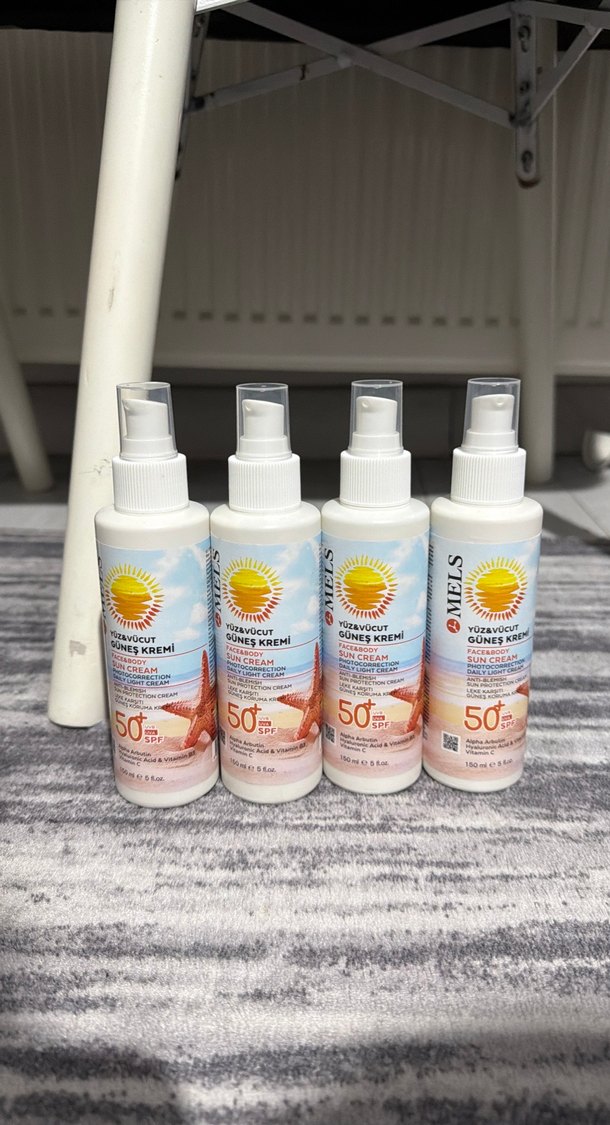 Yüz ve vücut için SPF 50 güneş kremi. Hafif formülüyle yüksek güneş koruması sağlar. Sprey şişede pratik kullanım sunar. ☀️ 2027 Temmuz son kullanım tarihi 4 lü fiyat 200 tl tekli alımda 75 tl