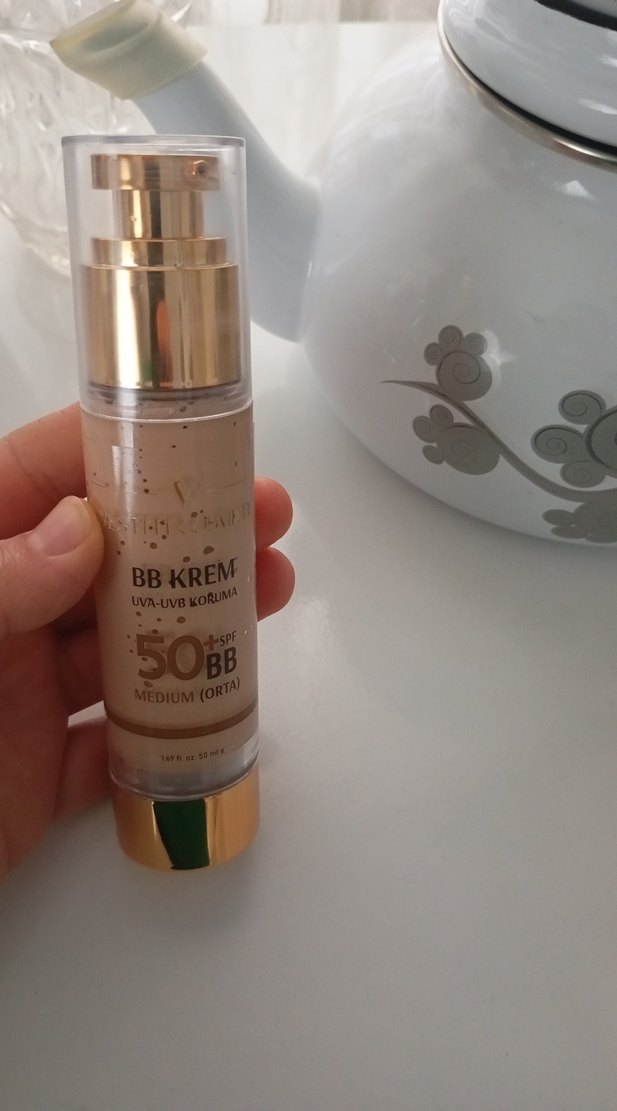 Orta tonlu, parlak bitişli bej BB krem, UVA ve UVB koruması SPF 50 ile birlikte gelir. Pompalı şişede pratik kullanım sağlar.