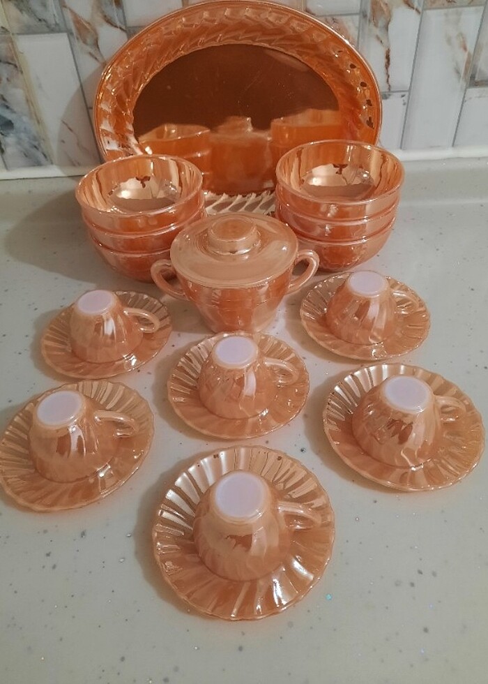 Antika Sarı Fincan Takımı Ve Çorba & Salata Kayık Tabak