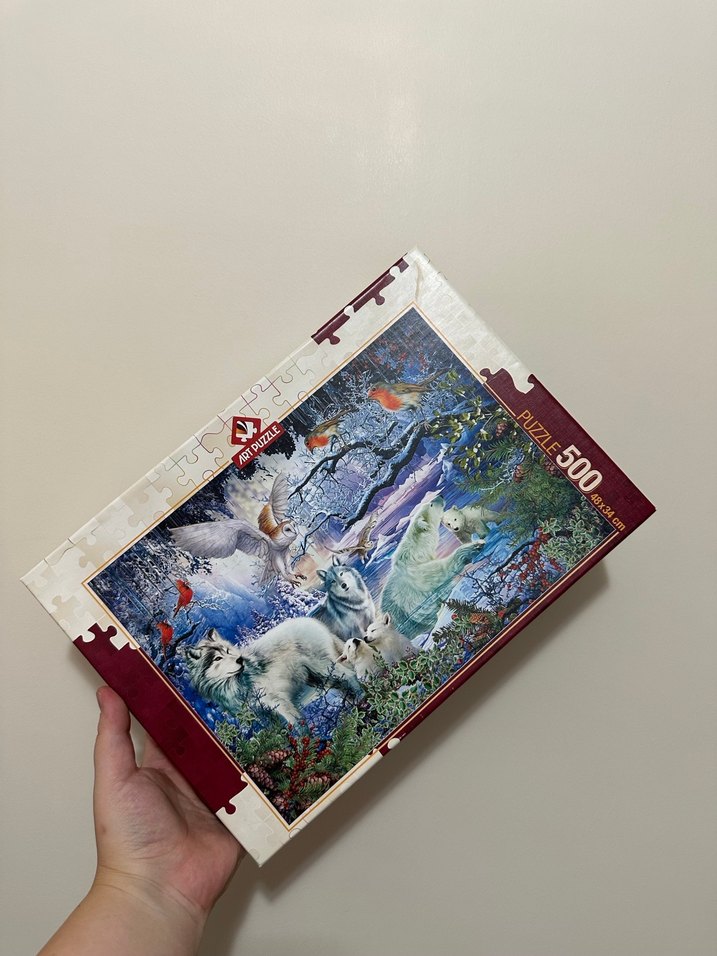 500 parçadan oluşan bu puzzle, kurtlar ve kuşlar gibi hayvanların yer aldığı çok renkli ve karanlık bir doğa sahnesi sunar. Detaylı ve keyifli bir bulmaca deneyimi sağlar. Hiç kullanılmadı paketli