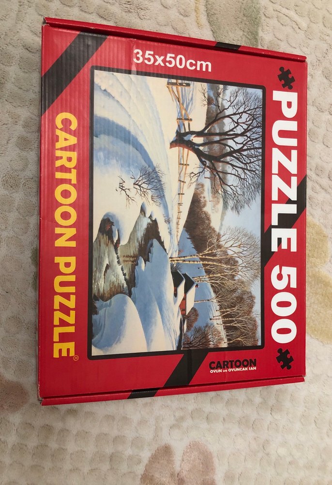 35x50 cm boyutlarında, 500 parçadan oluşan kar manzaralı puzzle. Koyu ve kamel tonları kullanılmış, detaylı ve eğlenceli bir yapboz.