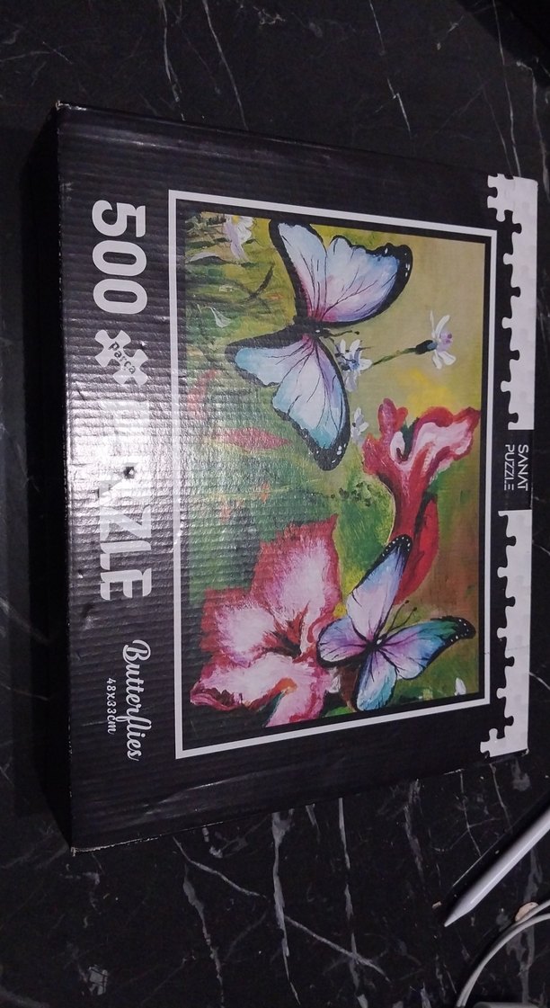 500 parçalık puzzle, kelebek temalı ve çok renkli koyu tonlara sahip. Kutuda SONAT markası yer alıyor.