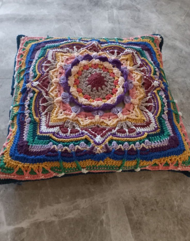 Renkli bohem tarzda, desenli örgü detaylara sahip minder kılıfı, her mekâna canlılık katar. 3 boyutlu arkası file örgüdür #ikea #zarahome #beymenhome #englishhome #yargıcıhome #kervan