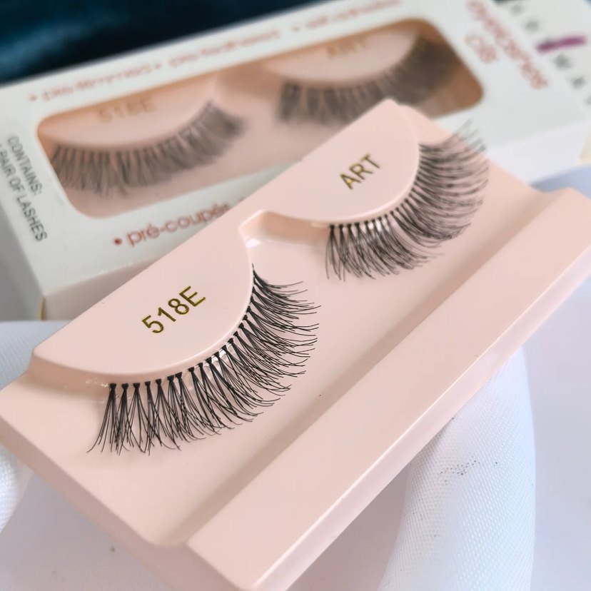 518E ART kodlu pastel bej renkte doğal ve şık görünümlü takma kirpikler. Hafif ve kolay uygulanabilir. ✨