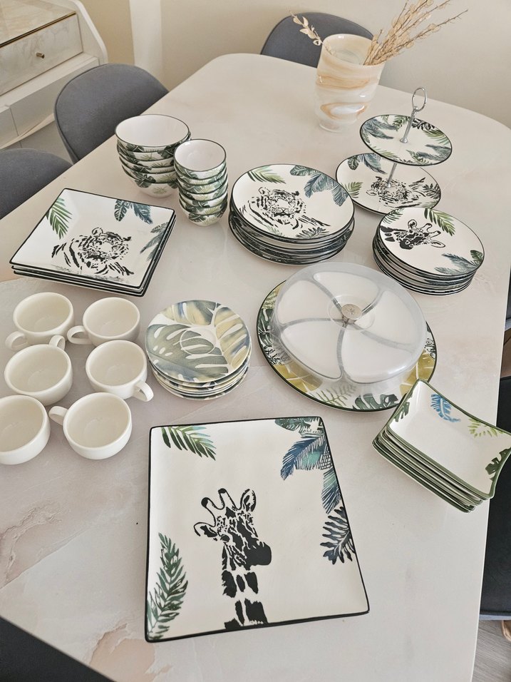 bazıları hiç kullanılmadı bazılarını 1 veya 2 kere kullandım. 6 adet servis tabağı 6 adet pasta tabağı 6 adet kase 6 adet çerezlik 6 adet küçük kase 6 adet tabaklı fincan 1 adet katlı sunumluk 1 adet kapaklı kahvaltılık 3 adet büyük kare servis kasesi 1 adet büyük kare servis #yemektakımı #safariyemektakımı #kahvaltıtakımı #mudoconsept #beymen