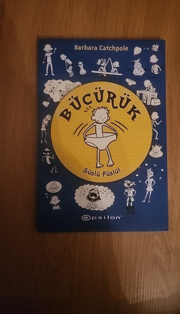 Barbara Catchpole tarafından yazılan ve Opsilon tarafından yayımlanan "Bücürük Süslü Püslü" adlı çocuk kitabı. Kapakta çocuk ve çeşitli karakterlerin eğlenceli çizimleri bulunuyor.