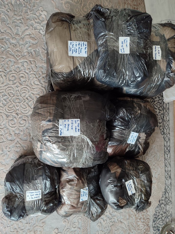 1 ADET NİŞAN KINA ABİYE LACİVERT (VİTRİNDE YÜKLÜ 40-46 ARASI UYUMLU ) 1 ADET SÜET ÇÖL RENGİ KABAN 1 ADET SİYAH FERACE 1 BEJ MEVSİMLİK KALE 1 DERİ KAŞE ( DEFORME YOK KALİTELİ ) 1 KAŞE KREM KABAN 4 ADET ALT-ÜST TAKIM 3 BOYDAN ELBİSE 2 UZUN GÖMLEK KALİTELİ 2 ŞAL 9 ADET KAZAK KALİTELİ BELİ KAPATAN TEMİZ KULLANIM 7 ADET KUMAŞ VE KOT PANTOLON 5 ADET İNCE GÖMLEK 5 KROP TİŞÖRT 2 KAZAK (KISA) 1 ADET ALT EŞOFMAN 1 GÖMLEK 1 TİŞÖRT 1 ADET ÇANTA 2 KİMONO GÖMLEK TARZI 2 SPOR GÖMLEK ÜRÜNLER TOPTAN İHALE USULÜ EN YÜKSEK TEKLİFİ VERENE GÖNDERİLECEKTİR. ALANIN PİŞMAN OLMAYACAĞI 54-55 PARÇA ÜRÜN VARDIR UCUZA BIRAKILACAKTIR.
