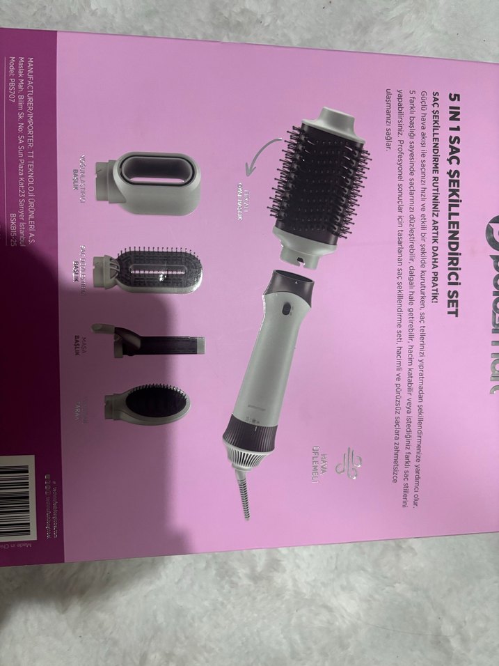 5in1 saç şekillendirici set, farklı saç stilleri için çeşitli başlıklar içerir. Beyaz ve gri renkte, kullanımı kolaydır. ♀️