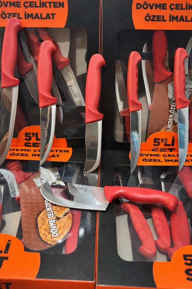 5’li Dövme Çelik Mutfak Bıçak Seti( Satır Hediyeli ) • Dövme çelikten üretilmiştir • Uzun süre keskinliğini korur • Ergonomik ve kaymaz sap • Günlük mutfak kullanımı için uygundur • Sebze, et ve genel kesimler için ideal • Sıfır, paketli ürün • Toptan & Perakende satış mevcuttur