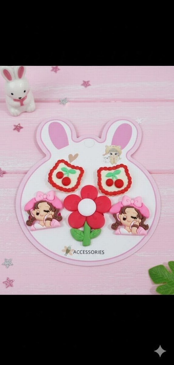 Pembe, kiraz, çiçek ve kız figürlü baskılı çocuk saç tokası seti, bohem tarzı için uygundur.