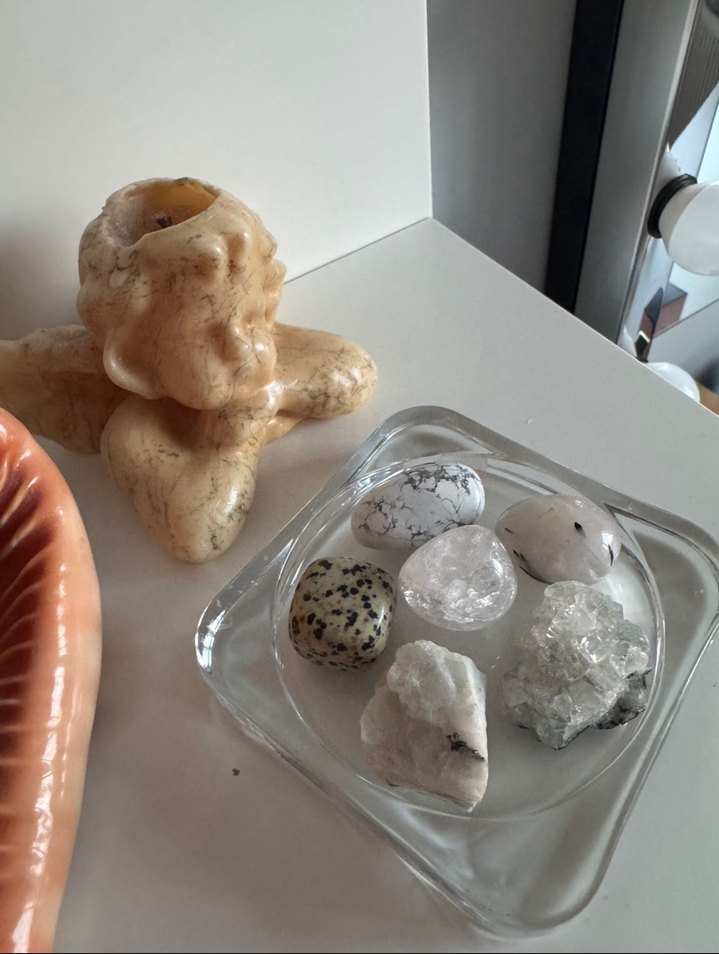 Minik ama güçlü bir set. Doğal taşlarla ruhunu hafiflet, enerjini dengele. İçinde yer alan her taş farklı bir alanı destekliyor: – Dalmaçyalı Jasper: pozitiflik, denge – Rutil Kuvars: netlik, karar alma – Necef: arınma ve ferahlık – Kristal Kuvars: genel enerji dengeleme – Havlit: zihinsel sakinlik ️ Paketler özenle hazırlanıyor, fotoğraftakiyle ayni parçalarlar gönderiliyor Detaylı görsel ya da özel set için mesaj atabilirsin.