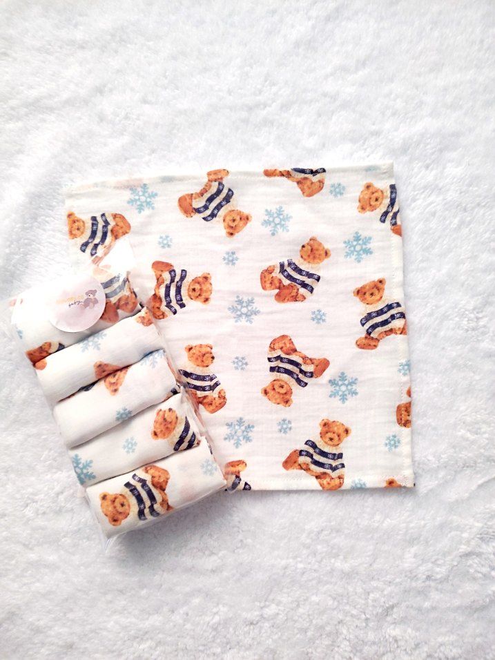 çift katlı müslin kumaştan üretilmiştir. 3 desen mevcut 5'li paketlerde satılmaktadır ilan açtırınız nuvomi.co baby