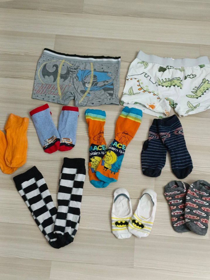 Sadece siyah corap altı dikilmiş Farklı desenler ve canlı renklerle çocuklar için çeşitli çorap seti. Çizgili, kareli ve çizgi film temalı modeller içerir.