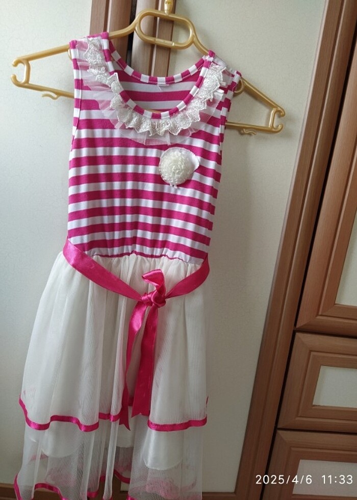 Üst tarafı likralı kumaş, alt tarafı astar üstüne tül.Şerit kemer.