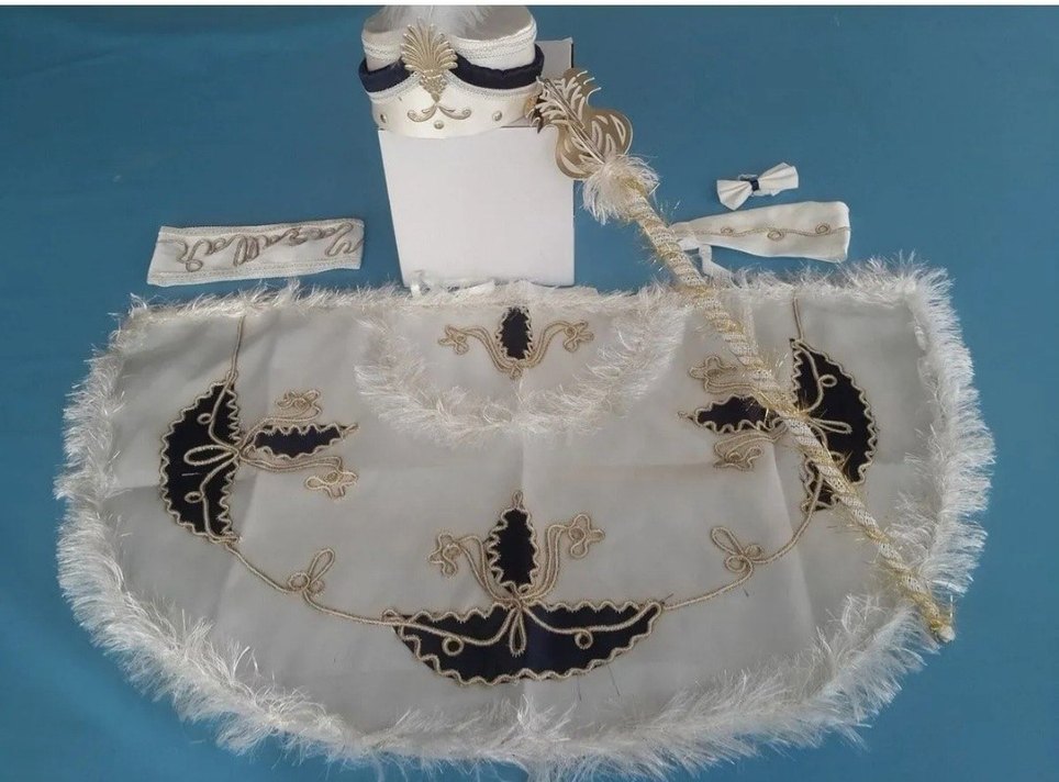 Hiç kullanılmadı. Pelerin, Kuşak, Şapka, Papyon, Asa ve Maşallah yazısı mevcuttur.