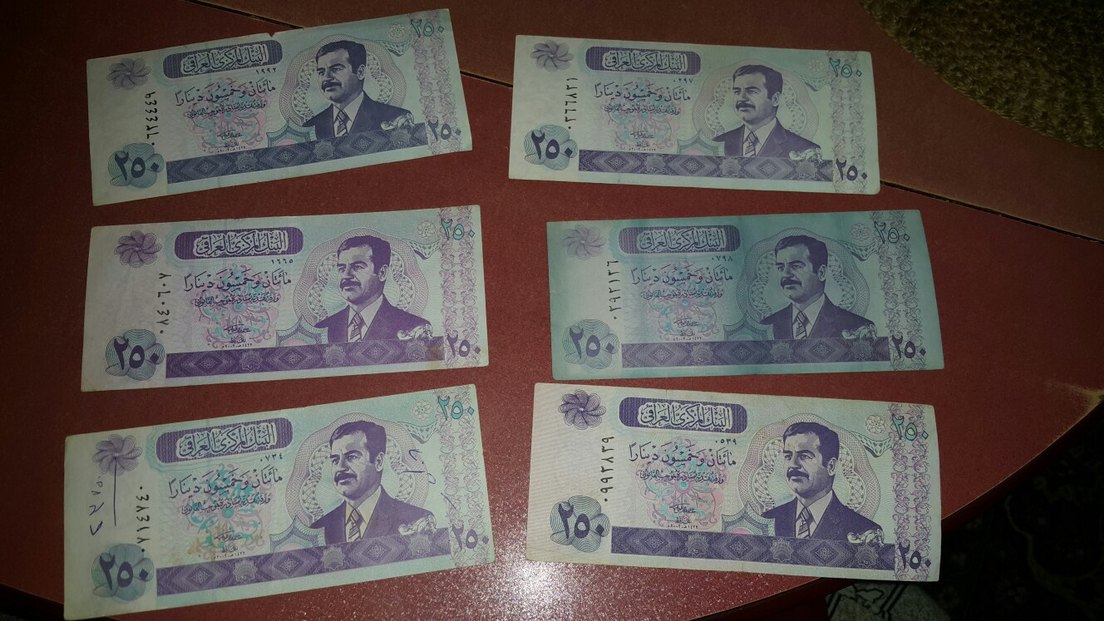 Detaylı portreler ve Arapça yazılar içeren gri eski banknot koleksiyonu