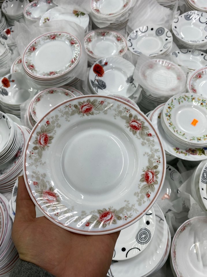 6 adet Beyaz Gül Desenli Yemek Tabağı