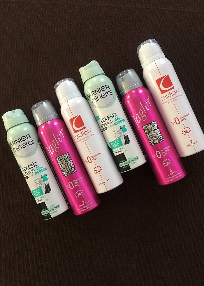 6 adet caldion,garnier,jagler muhtelif deodorant her biri 150ml.orijinal sıfır ürün.görseldekilerin hepsi birlikte.