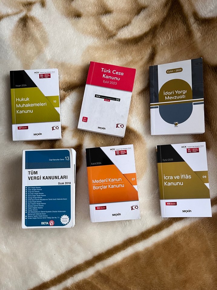 Türk Ceza Kanunu, Medeni Kanun, Vergi Kanunları, İdari Yargı, İcra ve İflas ile Hukuk Muhakemeleri Kanunu kitapları hepsi sınava uygundur
