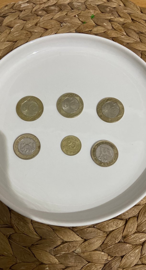 3 adet 5 lira , 1 adet altın rengi 25 kuruş,1 adet Ayasofya ve 1 adet 15 temmuz parası satılıktır
