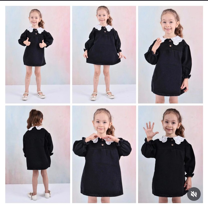 6 ay 1.2.3.4 yaş arası Nakışlı Siyah Kız Çocuk kot Elbise