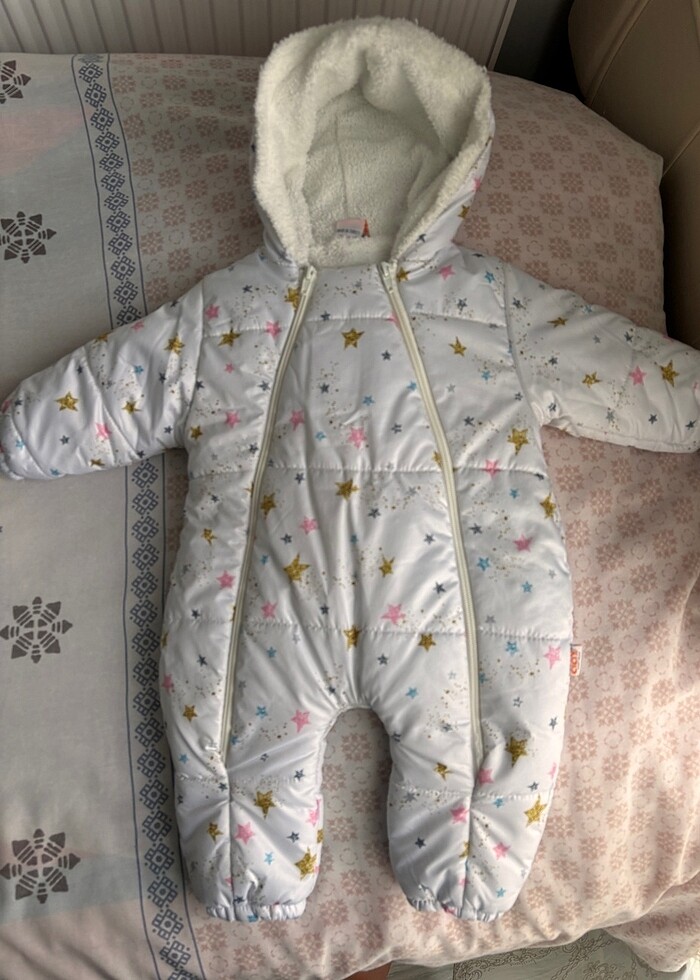 Yeni gibi çok kullanılmadı eldivenleri ve patikleri de var. Tulumun içinden geçen ipleri düşmelerini engelliyor