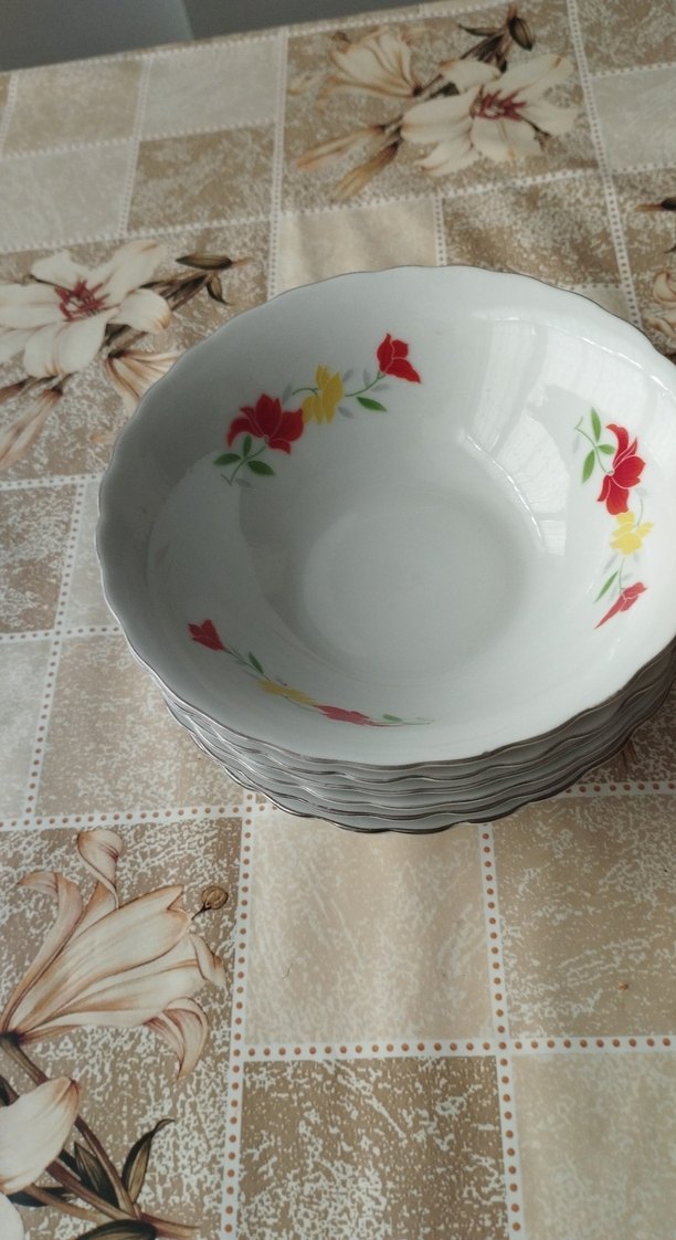 Aldığımda yıkadım ama çokca kasem olduğu için hiç kullanmadım elimde 12 adet vardır.6 adet fiyatıdır 15 cm çapında çorba kasesidir.