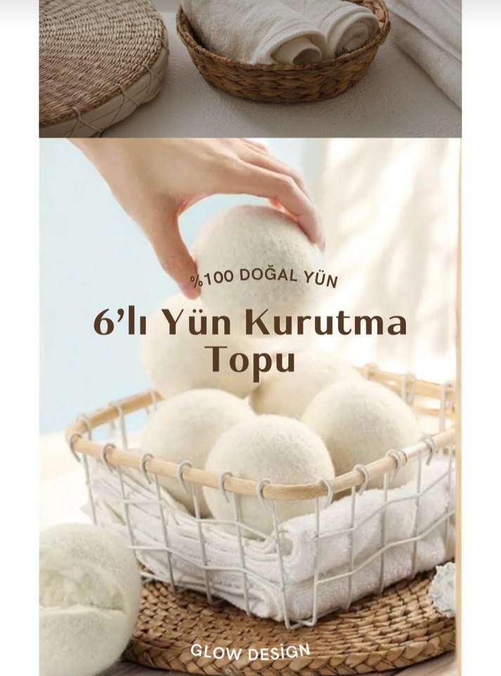 6'lı %100 Doğal Yün Kurutma Topu