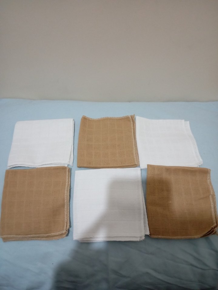 Bej ve beyaz renklerde, %100 pamuklu kumaştan yapılmış bebek ağız mendilleri... Sıfır ürün... Elimde 4 set mevcut...