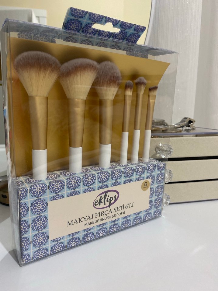 Beyaz saplı, açık renkli 6'lı makyaj fırça seti. Farklı makyaj uygulamaları için uygundur. ️