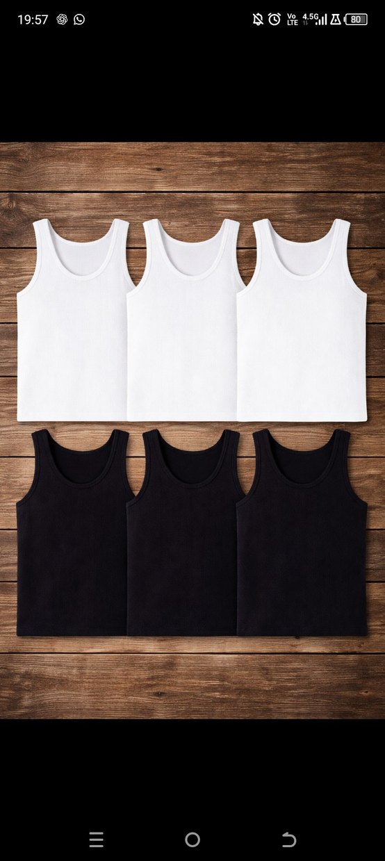 Yumuşak kumaştan yapılmış beyaz ve siyah erkek atlet seti, katmanlama için uygundur. Beden : L tek beden olmaktadır.