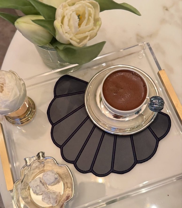 6 lı deri nakışlı kokteyl peçetesi kahve sunumluğu