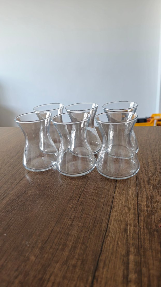 Altı adet ince belli, şeffaf çay bardağı seti, klasik çay sunumu için uygundur. English home alınmıştı.