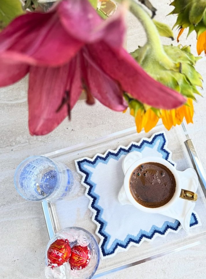 6 lı kokteyl peçetesi kahve sunumluğu 15x15 cm ebatında özel tasarım nakışlı kokteyl peçetesi ☕