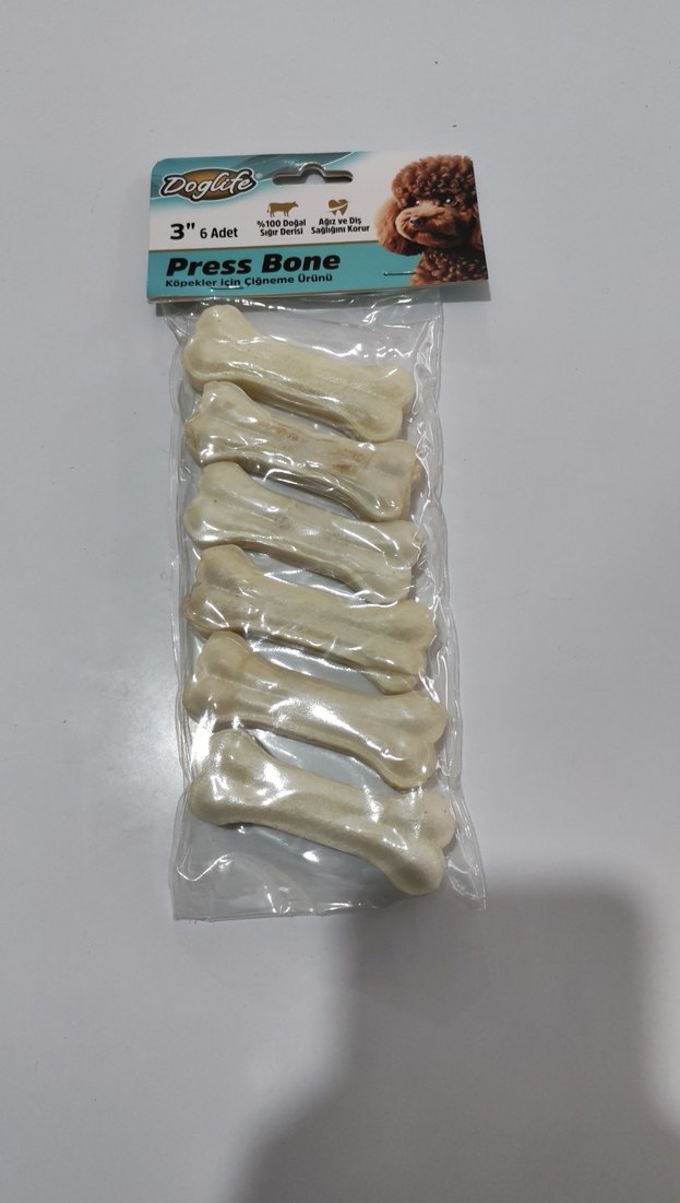 6 adet 3 inçlik köpekler için diş sağlığını destekleyen ve çiğneme ihtiyacını karşılayan Press kemik seti.