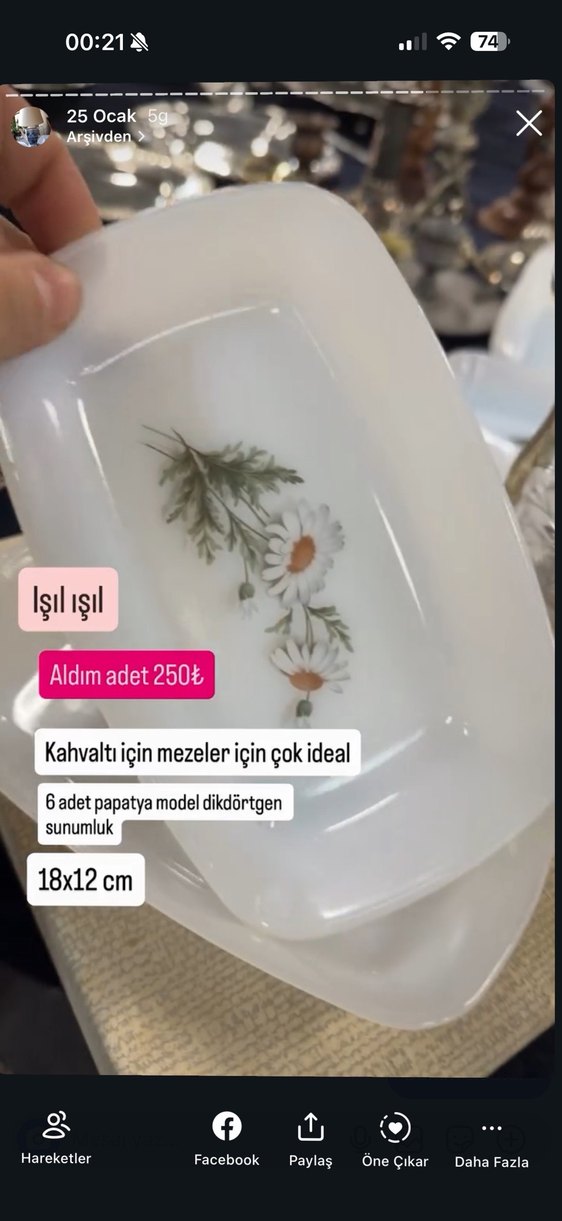 6 adet, 18x12 cm ölçülerinde, papatya desenli beyaz dikdörtgen sunumluk. Kahvaltılık mezeler için çok ideal, ışıl ışıl yüzeye sahip. ️