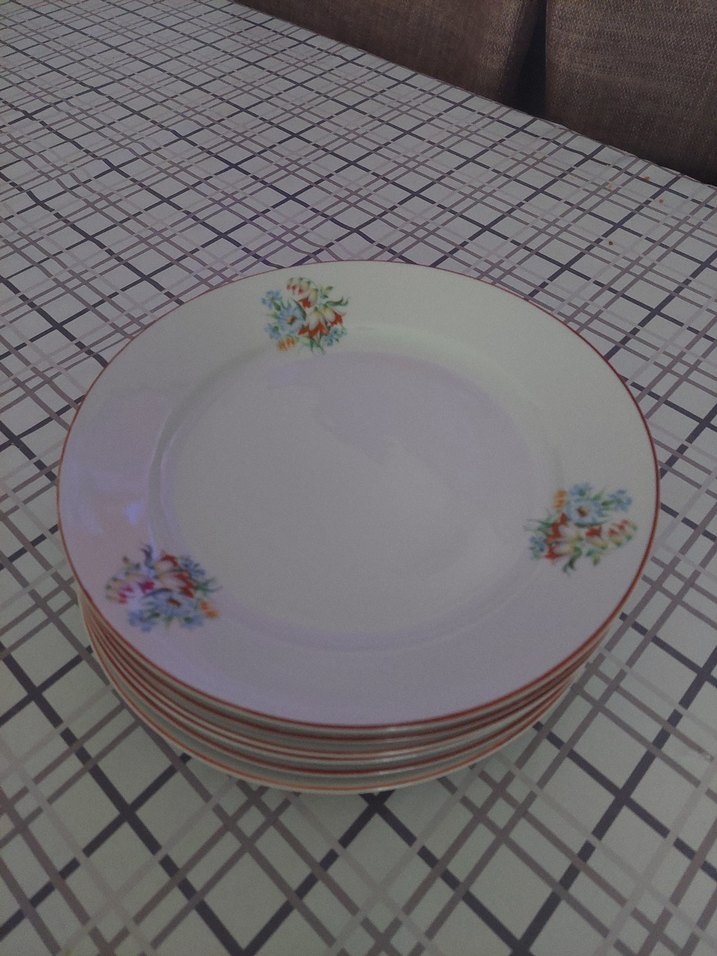 Pastel tonlarda çok eskilerden antika değerinde altılı servis tabağı kaliteli Porselen sorunsuz 24 cm.