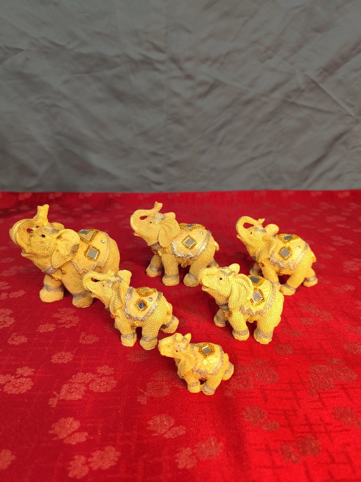 6'lı uğurlu dekoratif fil biblo Dörtgen aynalı desenleri var