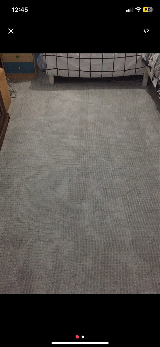 Düz desenli, yumuşak dokulu gri halı, sade ve minimal tarz için uygundur.