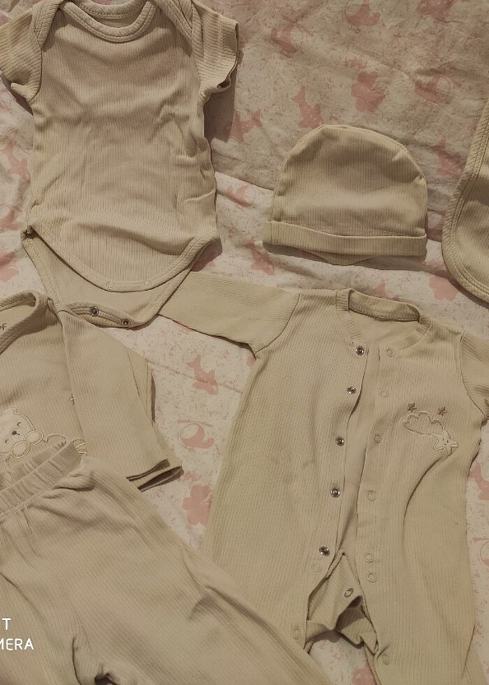 Tulumun önünde hafif leke var, onun dışında sorunsuz, krem rengi pamuklu