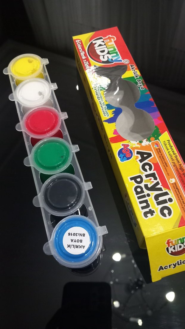 Altı canlı renkten oluşan akrilik boya setidir. Küçük kaplarda, çeşitli resim projeleri için uygundur.