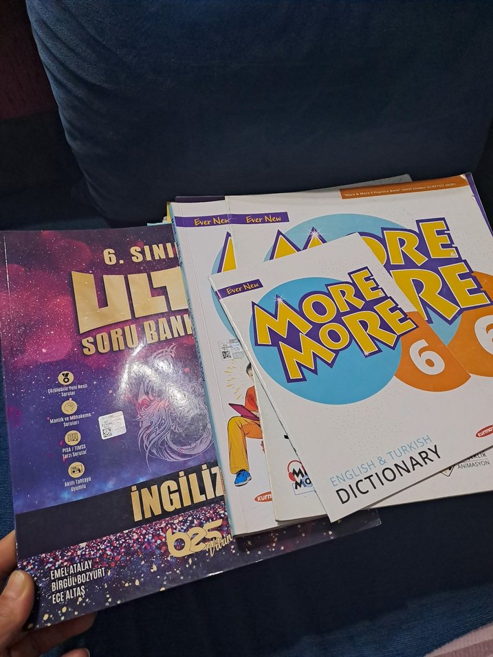 6. sınıf İngilizce için hazırlanmış soru bankası ve More More 6 adlı İngilizce-Türkçe sözlük seti içerir.