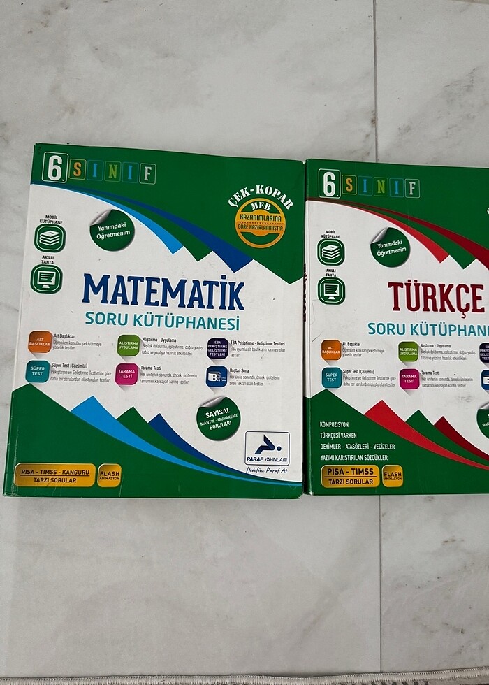 6. Sınıf Matematik Türkçe Din Kültürü ve Ahlak Bilgisi Soru Kütüphanesi. Paraf yayınları. Pısa Tıms tarzı sorular. Çözülen sayfaları sadece kurşun kalemle çözülmüştür. Matematik kitabının üst yan kısmında hafif aşınma vardır. Başka bir sıkıntısı yoktur. Üçünün toplam fiyatıdır.