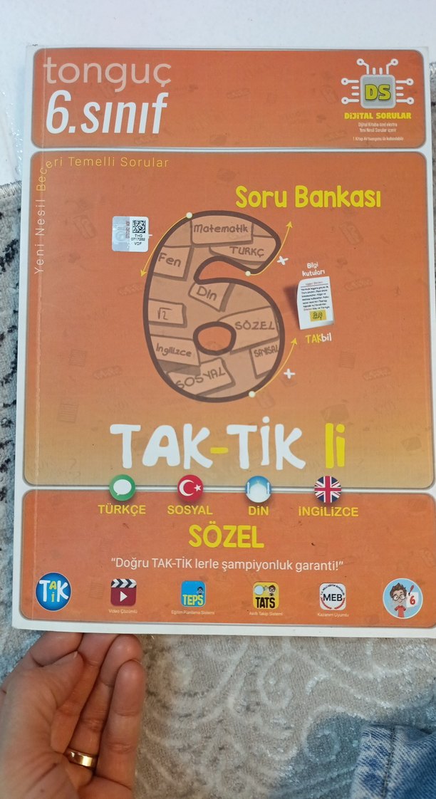 6. sınıf için Türkçe, Sosyal, Din ve İngilizce konularını içeren TAK-TİK özellikli soru bankası. işaretli yerler çözüldü sadece geri kalan yerler temiz