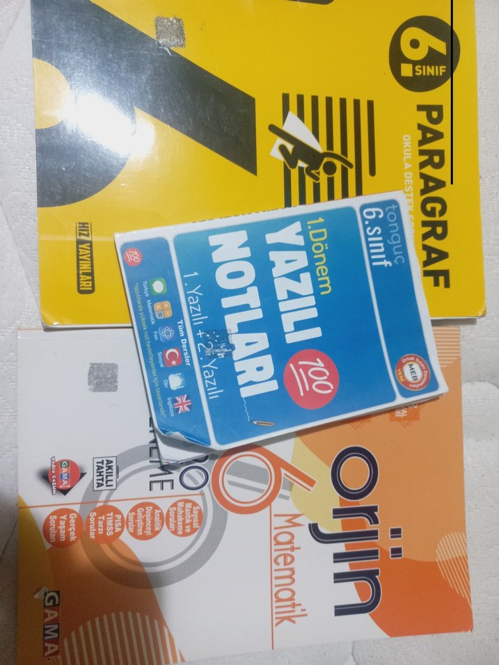 6. sınıf için matematik ve paragraf konularını içeren sarı kapaklı eğitim notları seti.