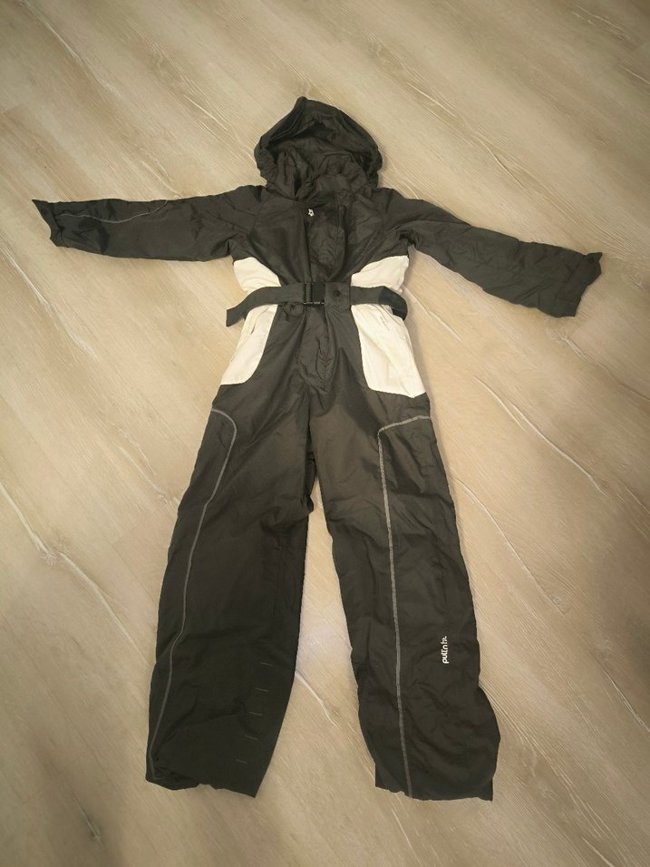 Kemerli bel ve yumuşak polar kumaştan yapılmış siyah erkek cocuk kayak tulumu, sokak tarzında sıcak ve rahat.sadece bir sezon iki defa Uludağ'da giyebildik.