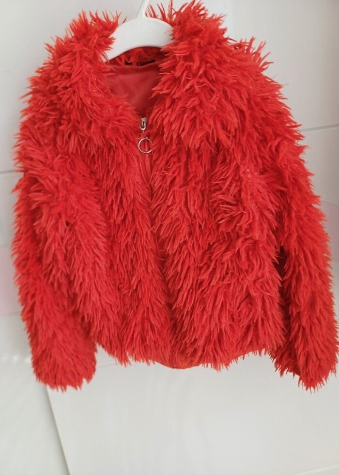 6 yaş temiz ve az kullanılmış tyess marka pelus kürklü ceket.Nar cicegi rengindedir. #ceket #mont #yelek #hirka #elbise #kot #etek