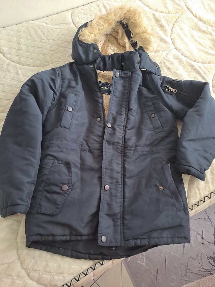 Düğmeli, kesimli yaka ve sokak tarzı rahat kesime sahip koyu gri erkek çocuk kabanı. Yumuşak ve sıcak kumaştan üretilmiştir.ici polarli