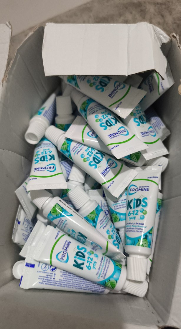 60 adet 15 ml taşınabilir küçük diş macunu 6-12 yaş çocuklar için Promine Kids diş macunu, ferah nane aromalı ve nazik bakım sağlar. Küçük tüplerde sunulur.