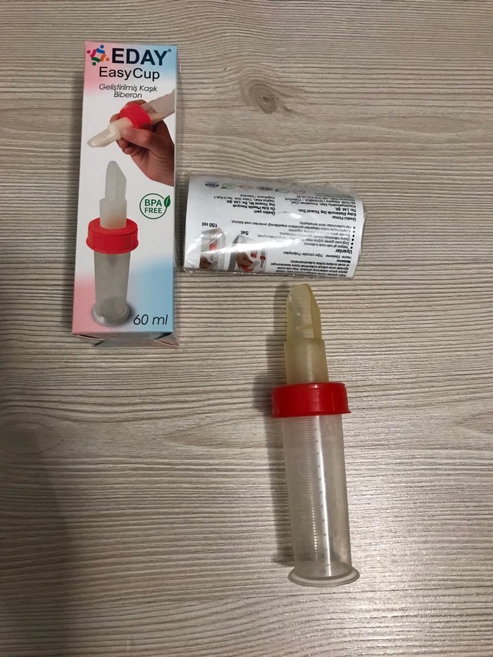 Easy cup geliştirilmiş kaşık biberon 60ml. Bpa içermez. Birkaç kez çorba vermeye çalıştım ama alışamadı yediremedik bir dahada kullanamadık. Sıfır almadan önce deneme amaçlı alınıp bebeğin kabul edip etmeyeceği denenebilir. Kaynatmaya uygundur.